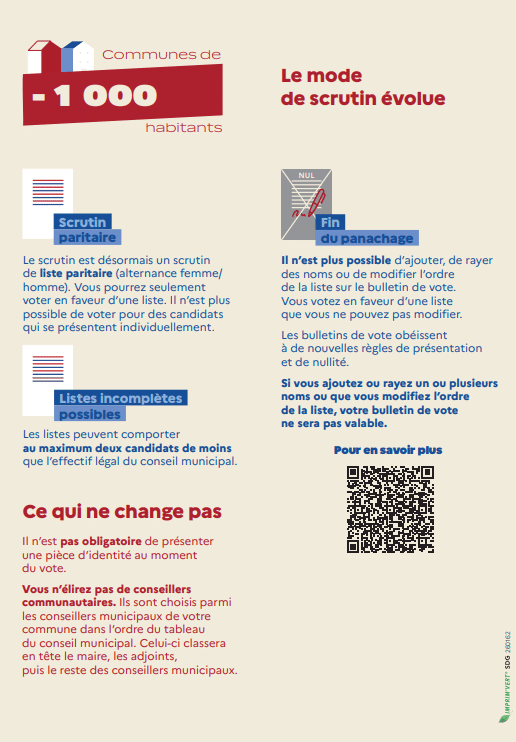 Suite à la Loi n° 2025-444 du 21 mai 2025, le scrutin évolue dans les communes de moins de 1 000 habitants.